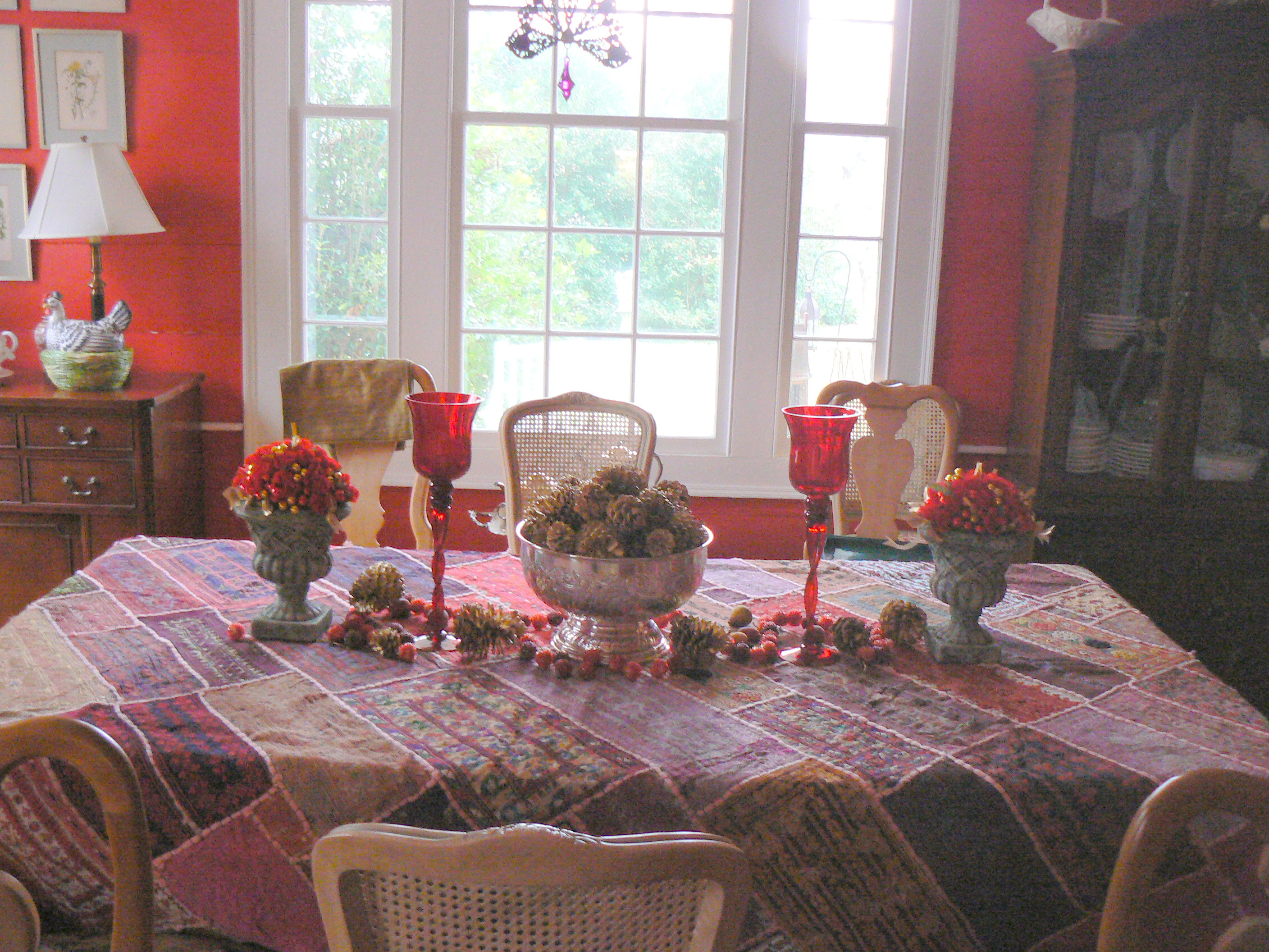 This winter when I decorated my dinning room for holiday festivities, I was keenly aware that the view from the window was less than I hoped.So I moved ‘Summer’ from the cutting garden directly on axis with the centerpiece on the table.