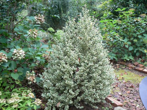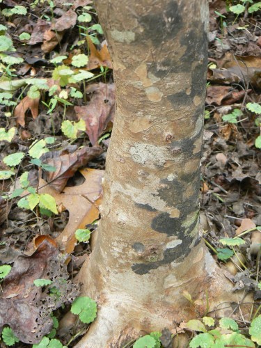 This mottled ginger (Asarum splendens) is one of several types I planted, it is the only one that has survived & thrived. It is located across from the Mourning Bench. This was the only area where I originally planted perennials. What comes up now are the tough survivors or the plants that re-seed.